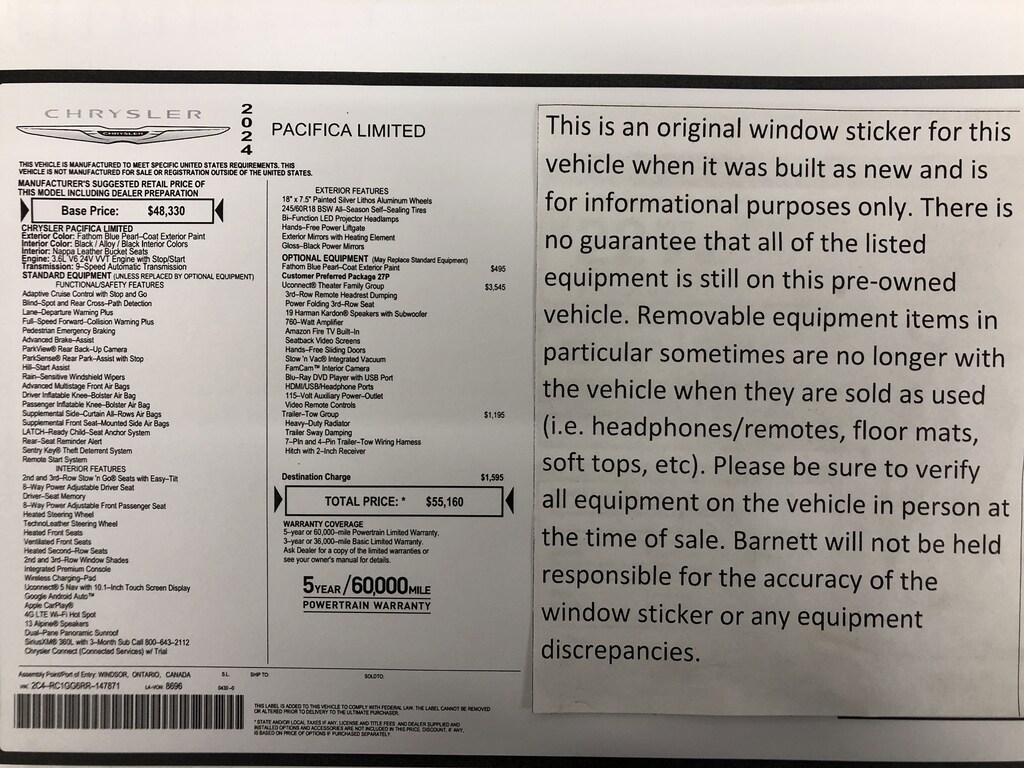 UCONNECT THEATER FAMILY GROUP -inc: Video USB Port 3rd Row Remote Headrest Dumping Blu-Ray/DVD Player/USB Port Power Folding 3rd Row Seat Hands Free Sliding Doors 19 harman/kardon Speakers w/Subwoofer High Definition Multimedia Interface Stow N Vac Integrated Vacuum 3-Channel Video Remote Control Seatback Video Screens 115V Auxiliary Power Outlet 760 Watt Amplifier FamCAM Interior Camera Amazon Fire TV Built-In