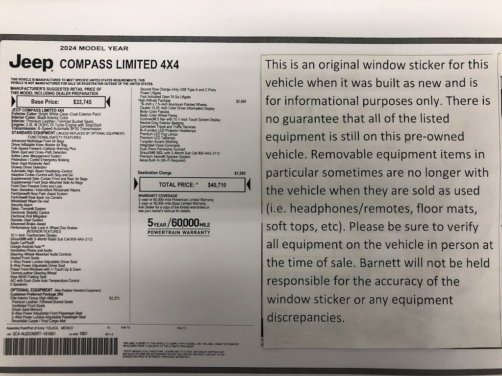 HIGH ALTITUDE PACKAGE -inc: Tungsten Accent Stitching Body Color Fascias Body Color Exterior Sill Moldings Integrated Voice Command w/Bluetooth Body Color Roof GPS Navigation Body Color Door Claddings Gloss Black Surround/Neutral Gray Rings SiriusXM w/360L Premium LED Fog Lamps LED Low/Highbeam Projector Headlamps Connected Travel & Traffic Services Tires: 235/45R19 BSW AS Wheels: 19" x 7.5" Aluminum Painted Alexa Built-In Power Front/Fixed Rear Full Sunroof Neutral Gray Exterior Accents Radio: Uconnect 5 Nav w/10.1" Display Premium Alpine Speaker System HD Radio Liquid Chrome/Chainmail Hydro Accent Body Color Wheel Flares Premium Taillamps Black Day Light Opening Moldings Neutral Gray Exterior Badging Cluster 10.25" TFT Color Display