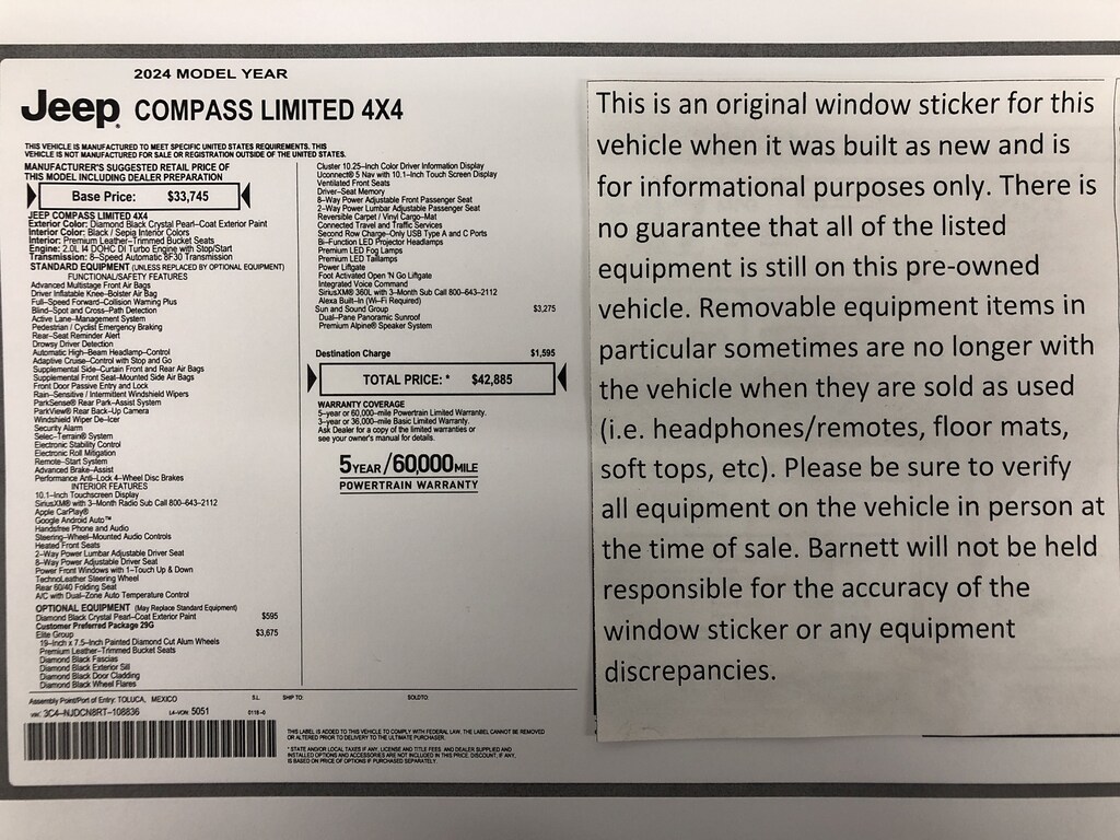 ELITE GROUP -inc: Integrated Voice Command w/Bluetooth Power 2-Way Passenger Lumbar Adjust GPS Navigation SiriusXM w/360L Premium LED Fog Lamps LED Low/Highbeam Projector Headlamps Connected Travel & Traffic Services Tires: 235/45R19 BSW AS Diamond Black Door Cladding Alexa Built-In Power 8-Way Adjust Front Passenger Seat Diamond Black Fascias Radio: Uconnect 5 Nav w/10.1" Display Reversible Carpet/Vinyl Cargo Mat HD Radio Premium Taillamps Foot Activated Open 'N Go Liftgate Diamond Black Exterior Sill Wheels: 19" x 7.5" Painted Diamond Cut Aluminum Driver Seat Memory Power Liftgate Diamond Black Wheel Flares Cluster 10.25" TFT Color Display
