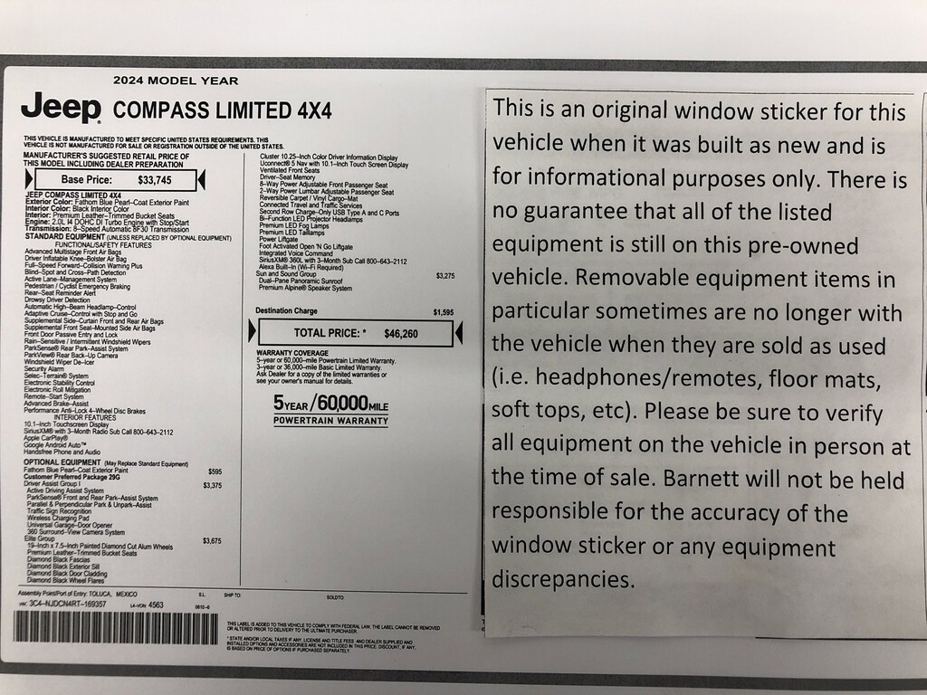 QUICK ORDER PACKAGE 29G LIMITED -inc: Engine: 2.0L I4 DOHC DI Turbo w/ESS Transmission: 8-Speed Automatic 8F30