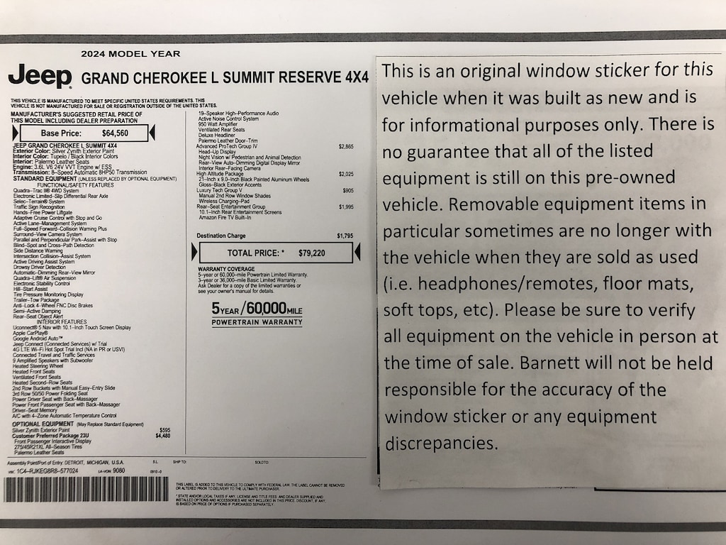 QUICK ORDER PACKAGE 23U SUMMIT RESERVE -inc: Engine: 3.6L V6 24V VVT UPG I w/ESS Transmission: 8-Speed Automatic (8HP50) 950 Watt Amplifier Deluxe Headliner Palermo Leather Door Trim Summit Reserve Badge Ventilated Rear Seats Summit Reserve