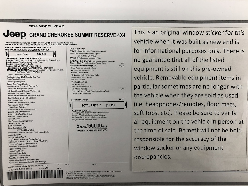 QUICK ORDER PACKAGE 23U SUMMIT RESERVE -inc: Engine: 3.6L V6 24V VVT UPG I w/ESS Transmission: 8-Speed Automatic 8HP50 950 Watt Amplifier Deluxe Headliner Palermo Leather Door Trim Summit Reserve Badge Ventilated Rear Seats Summit Reserve