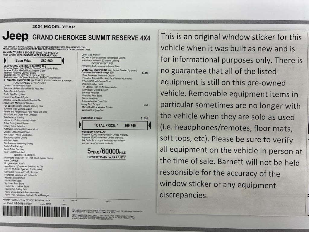 QUICK ORDER PACKAGE 23U SUMMIT RESERVE -inc: Engine: 3.6L V6 24V VVT UPG I w/ESS Transmission: 8-Speed Automatic 8HP50 950 Watt Amplifier Deluxe Headliner Palermo Leather Door Trim Summit Reserve Badge Ventilated Rear Seats Summit Reserve