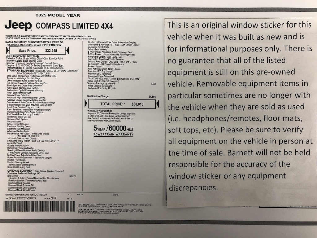 Tires: 225/55R18 BSW All Season (DISC) No longer available as standard equipment as of March 3 2025.