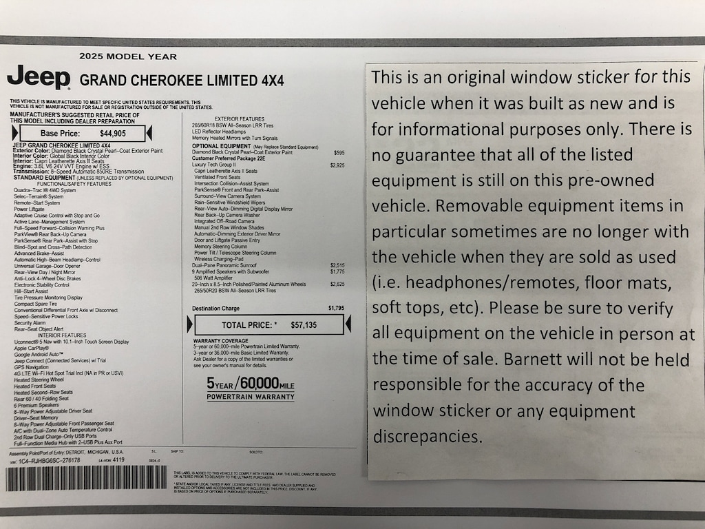 QUICK ORDER PACKAGE 22E -inc: Engine: 3.6L V6 24V VVT UPG I w/ESS Transmission: 8-Speed Automatic (850RE)