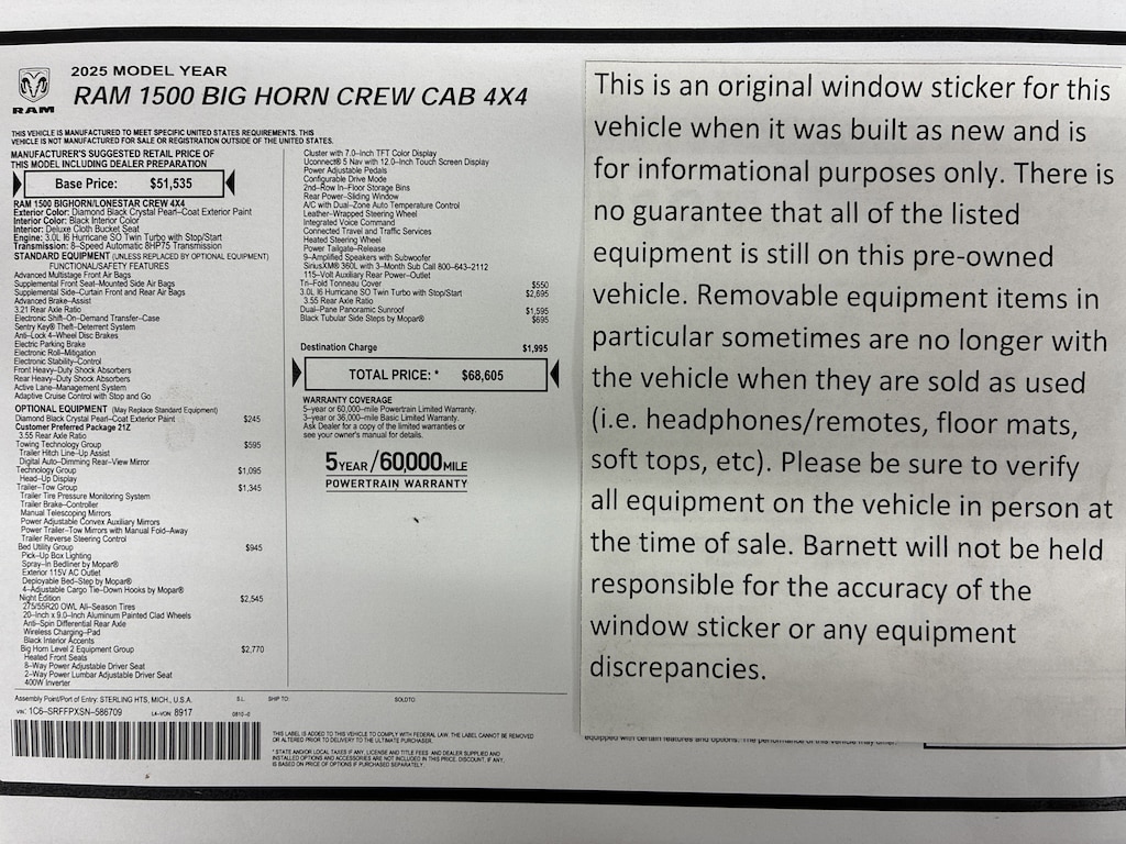 BIG HORN LEVEL 2 EQUIPMENT GROUP -inc: Google Android Auto Power Adjustable Pedals Leather Wrapped Steering Wheel 12" Touchscreen Display Glove Box Lamp Auto Power-Folding Mirrors 115V Auxiliary Rear Power Outlet Media Hub w/2 Charge Only USBs Heated Front Seats Security Alarm Black Premium Power Mirrors Apple CarPlay Premium Overhead Console 9 Amplified Speakers w/Subwoofer Remote Tailgate Release 115V Auxiliary Power Outlet LED Dome Lamp w/On/Off Switch Universal Garage Door Opener 2nd Row In Floor Storage Bins Sun Visors w/Illuminated Vanity Mirrors LED Footwell Lighting Power 2-Way Driver Lumbar Adjust Rear Window Defroster Rear View Auto Dim Mirror Rear Power Sliding Window GPS Navigation Overhead LED Lamps Auto Dim Exterior Driver Mirror SiriusXM w/360L Connected Travel & Traffic Services Heated Steering Wheel Configurable Drive Mode 400W Inverter HD Radio Radio: Uconnect 5 Nav w/12.0" Display Exterior Mirrors w/Supplemental Signals Steering W