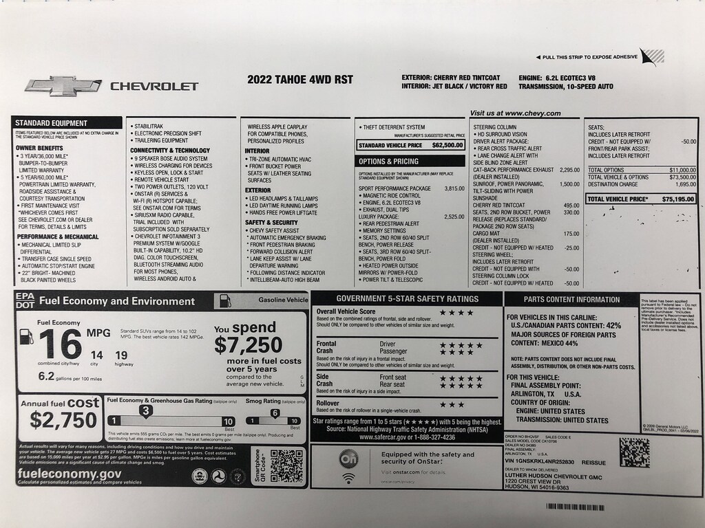 I purchased a 21 Chevy Tahoe LT October 2020 and my only regret is not getting an RST with sunroof and ventilated seats. Coming from a Silverado RST I prefer the more aggressive appearance. The ride is night and day compared to the Silverado and previous Tahoes I've driven. Smooth handing, very confident in corners, absorbs most bumps well. The Tahoe finally feels premium on the inside, even in the LT trim. Soft touch material everywhere! Tech is finally on par and or better than competitors without going to extreme. The infotainment system isn't perfect but it's smooth and glitch free. Wireless Android auto is the best! Overall the truck is very accommodating in all 3 rows at 6' 2" 270 lbs I approve the third row. I just wish the seating was a little more plush in all rows. Fuel economy is as expected about 16-17 mpg could do better if I ease off the gas. For a mix of Tampa highway and city driving that's not bad. Would love to see a serious Hybrid not like previous poorly executed models. - 5.0