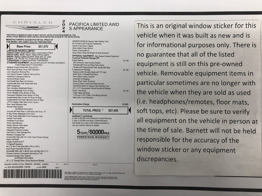 QUICK ORDER PACKAGE 27P -inc: Engine: 3.6L V6 24V VVT UPG I w/ESS Transmission: 9-Speed 948TE Automatic