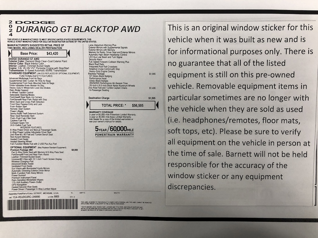 Listed selling price includes a $1000 Barnett Trade Bonus. Trade-in vehicles no more than 10 years old and 100K miles or less with a clean title automatically qualify. Trade-in vehicles outside these parameters need to be discussed and reviewed in person with the dealership to determine qualification. "The vehicle equipment list is auto generated and errors in listed equipment may occur. Please be sure to verify all equipment on the vehicle in person at time of sale as this list may not be 100% accurate. Barnett will not be held responsible for the accuracy of this list."