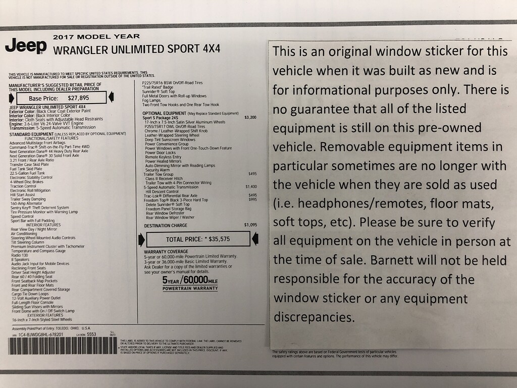 Listed selling price includes a $1000 Barnett Trade Bonus. Trade-in vehicles no more than 10 years old and 100K miles or less with a clean title automatically qualify. Trade-in vehicles outside these parameters need to be discussed and reviewed in person with the dealership to determine qualification. "The vehicle equipment list is auto generated and errors in listed equipment may occur. Please be sure to verify all equipment on the vehicle in person at time of sale as this list may not be 100% accurate. Barnett will not be held responsible for the accuracy of this list."