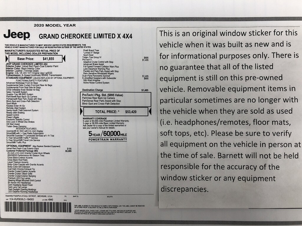 Listed selling price includes a $1000 Barnett Trade Bonus. Trade-in vehicles no more than 10 years old and 100K miles or less with a clean title automatically qualify. Trade-in vehicles outside these parameters need to be discussed and reviewed in person with the dealership to determine qualification. "The vehicle equipment list is auto generated and errors in listed equipment may occur. Please be sure to verify all equipment on the vehicle in person at time of sale as this list may not be 100% accurate. Barnett will not be held responsible for the accuracy of this list."