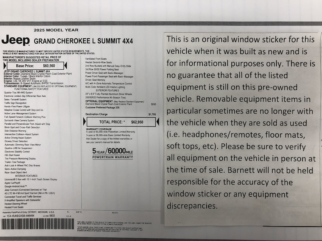 QUICK ORDER PACKAGE 23S -inc: Engine: 3.6L V6 24V VVT UPG I w/ESS Transmission: 8-Speed Automatic (8HP50)